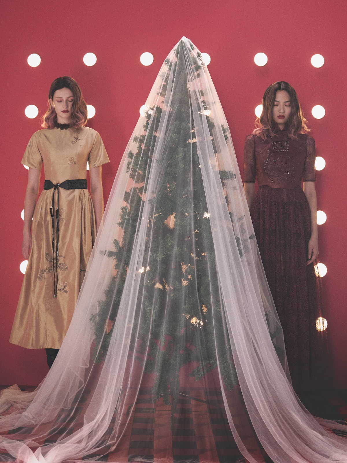 然而,在每一幀的深處,潛藏著另一個身影 — 與人物並肩的「聖誕幽靈」。幽靈一角造型符碼,取自SHIATZY CHEN 夏姿・陳 今季全新推出的「極簡系列」,以俐落剪裁與留白構築沉靜之美,與主體所著的2025秋冬系列,有著一繁一簡、一實一虛,交織成層次,象徵過去與未來、記憶與重生的在同個時空並行。