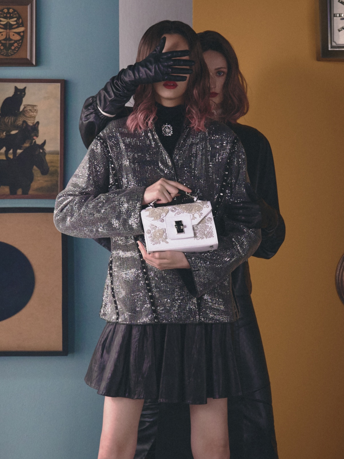 此次大片以2025秋冬系列共同詮釋,場景中,一幀幀老照片構築「過去」的記憶、一面面時鐘象徵「現在」的流轉,而矩形的光芒則映照「未來」的未知與希冀。在這場穿越時光的旅程裡,「聖誕幽靈」化為故事的靈魂引路者,喚醒女性內在三重意象:回憶之絲、現在之火、未來之光。