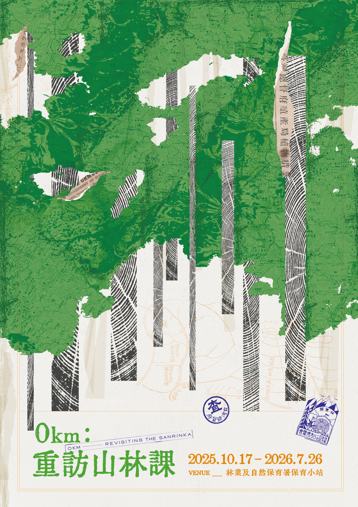 F 棟保育小站則迎來林業及自然保育署主辦的《0km:重訪山林課》百年展,將於 2025 年 10 月 17 日至 2026 年 7 月 26 日展出。展覽以日本殖民時期臺灣總督府山林課為核心,回顧其如何調查山林資源,並於 1925 年啟動深遠影響臺灣林業發展的「森林計畫事業」。百年後的今日,展覽重返昔日山林課職員宿舍——亦即 0km山物所的歷史場域,展區首度公開日治時期珍貴的手繪地圖、檔案與調查紀錄,帶領觀眾重返那段以科學方法經營臺灣山林的歷程,一同感受百年前林業人的熱情與山林的歷史回聲。
