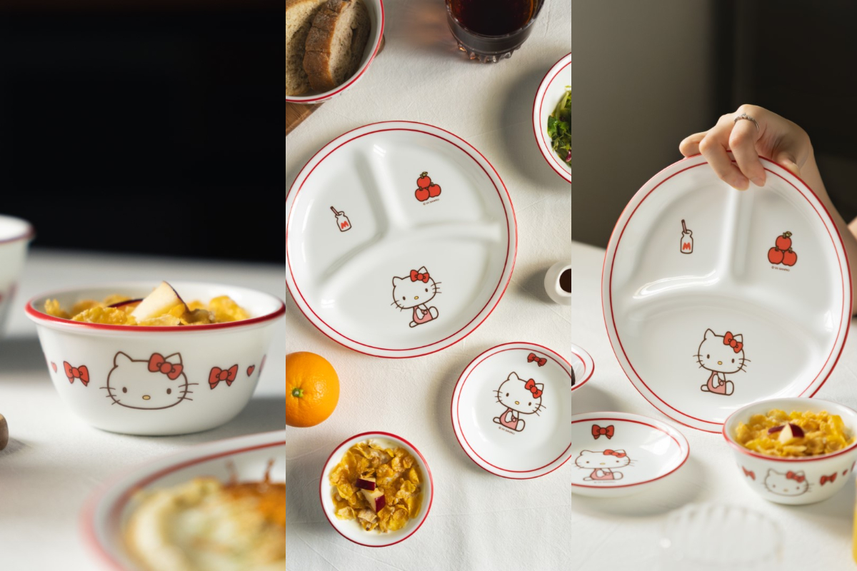 餐桌美學是療癒生活的關鍵。康寧餐具延續去年與「大耳狗喜拿」、「酷洛米&美樂蒂」聯名熱銷的氣勢,今年首度攜手全球超人氣的Hello Kitty ,推出6款全新花色的餐盤、餐碗與醬油碟 。新品以經典紅蝴蝶結、蘋果等元素設計,包括8吋分隔盤、韓式湯碗等實用單品 。