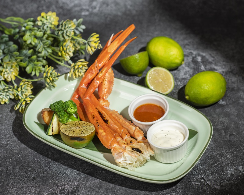 這道假日限定的超狂隱藏板菜單,讓許多食客為之瘋迷。炭烤過的松葉蟹腳香氣撲鼻,剝開蟹殼後立見飽滿鮮甜蟹肉,大口享受滿滿蟹肉,瞬間美味大爆發!主廚還特別準備兩款醬汁搭配,酸甜美乃滋或薑醋汁,直呼過癮無法擋!