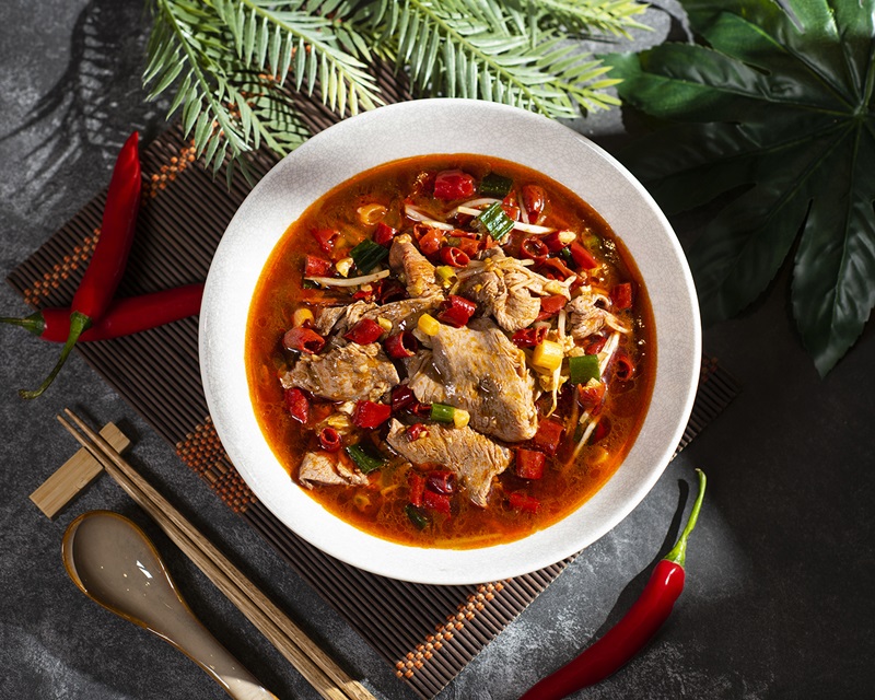 令人垂涎欲滴的「川味水煮牛」是川菜標誌之一,辣椒和花椒製造出香、麻、辛、辣口感,主廚將和牛肉片川燙幾秒,使其保持多汁嫩滑,又麻又辣相當夠味,再搭配著爽脆的豆芽菜平衡口感,如此濃烈的辣度與麻度教人難以抗拒,絕對是辛辣愛好者的最愛!