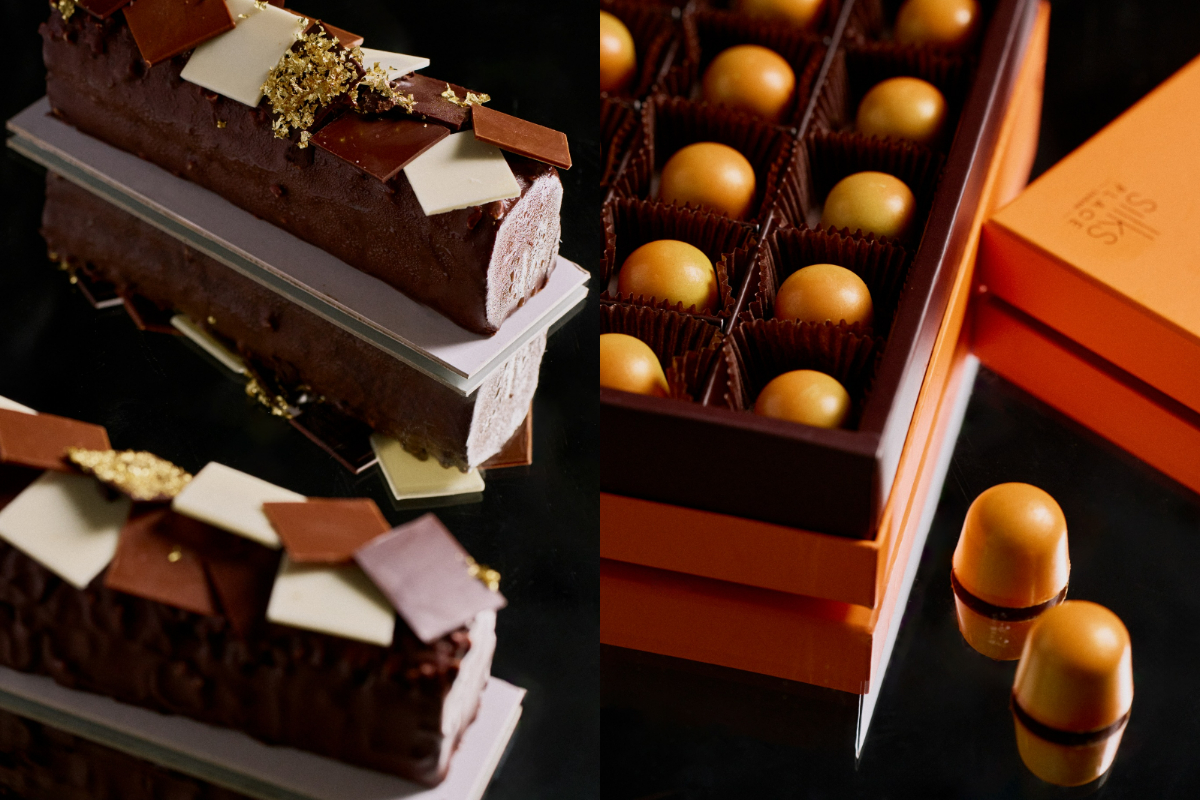 此外,在一樓外賣中心也同步販售客座主題巧克力商品,旅人蛋糕源自於早期歐洲人長途旅行需要隨時補充營養,而磅蛋糕的成分適合常溫保存因而得名,擁有旅日經驗的史蒂芬主廚將日本國粹清酒創意加入黑巧克力磅蛋糕中,糕體質地扎實且散出清甜酒香。日式柳橙巧克力選用來自日本的「不知火橘」原汁熬成酸甜柑橘果醬,結合香滑馥郁、帶有飽滿堅果韻味的64%黑巧克力,一口咬下充滿幸福的愉悅感,無論是送禮或是自己享受都相當適合。