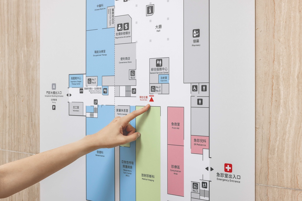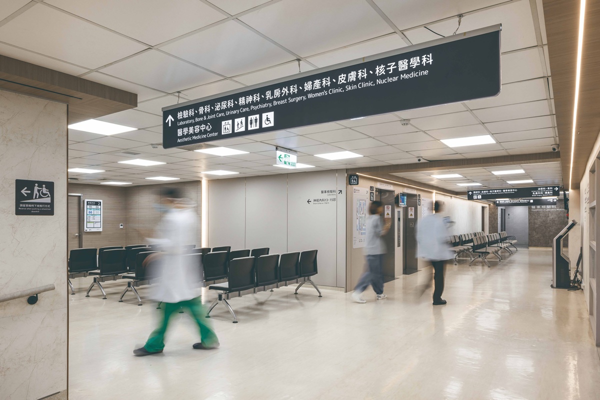 在這個過程中,醫院從「功能導向」轉為「感受導向」——光線不再冷冽、文字不再艱澀,連標示的高度與角度都為不同身高與行動需求設計。這不僅是視覺美學的改造,更是空間心理的修復,讓每一步都朝著更溫柔的人本醫療邁進。