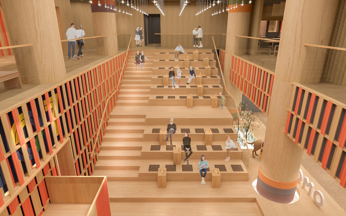 OMO Base是一個擁有大廳、休息區和咖啡廳等多種場所的公共空間。其中,從1樓延伸至2樓的大階梯是其一大特色,宛如夜來祭一般充滿活力,為整個空間帶來了色彩繽紛且華麗的氛圍。您可以在這些階梯式的座位上與朋友聊天,或是安排您的旅遊計畫,享受一段屬於自己的美好時光。
