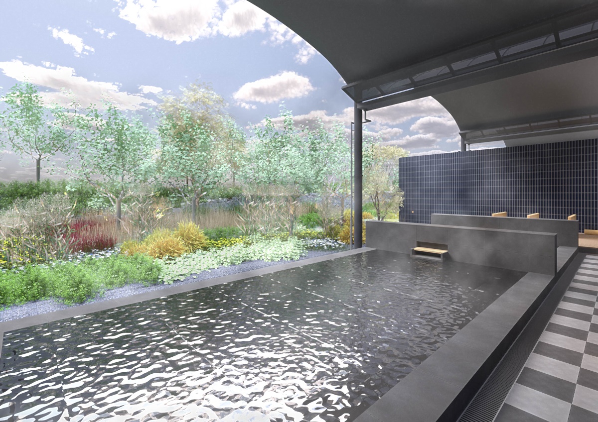 大浴場內設有露天澡堂、室內澡堂及桑拿。在以高知自然風光十足的後山為設計意象的露天澡堂中,紓解旅途的疲憊。室內澡堂內的壁畫使用巨大的木棉布作為畫布,染上鮮豔色彩的高知手工藝品「Furafu」,大浴場入口更有著日本土佐犬外觀的藝術品來迎接。泡湯休息室還提供,使用高知當季柑橘類水果製作的飲料及冷泡茶,適合消暑解渴。