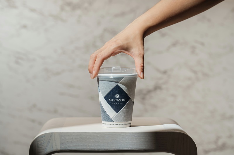 同時,主訴外帶TOGO帶著走的消費者,天成17CAFE外帶店呼應環保議題,特別挑選台製廠商出品的外帶杯,無須再多一層額外使用隔熱杯套,外層獨特的絨毛設計可耐熱120度有較佳的隔熱功能,而容器外層的發泡可達93%自然分解,材質較安全也達減塑的目的,杯身設計以幾何圖形呈現大塊的多邊形,使用靛藍色、白色、灰色作為重點色系,同步也推出天成17CAFE保溫杯,沉穩的視覺風格襯托出簡約與純粹,誠如單純想把一杯咖啡煮好的精神。