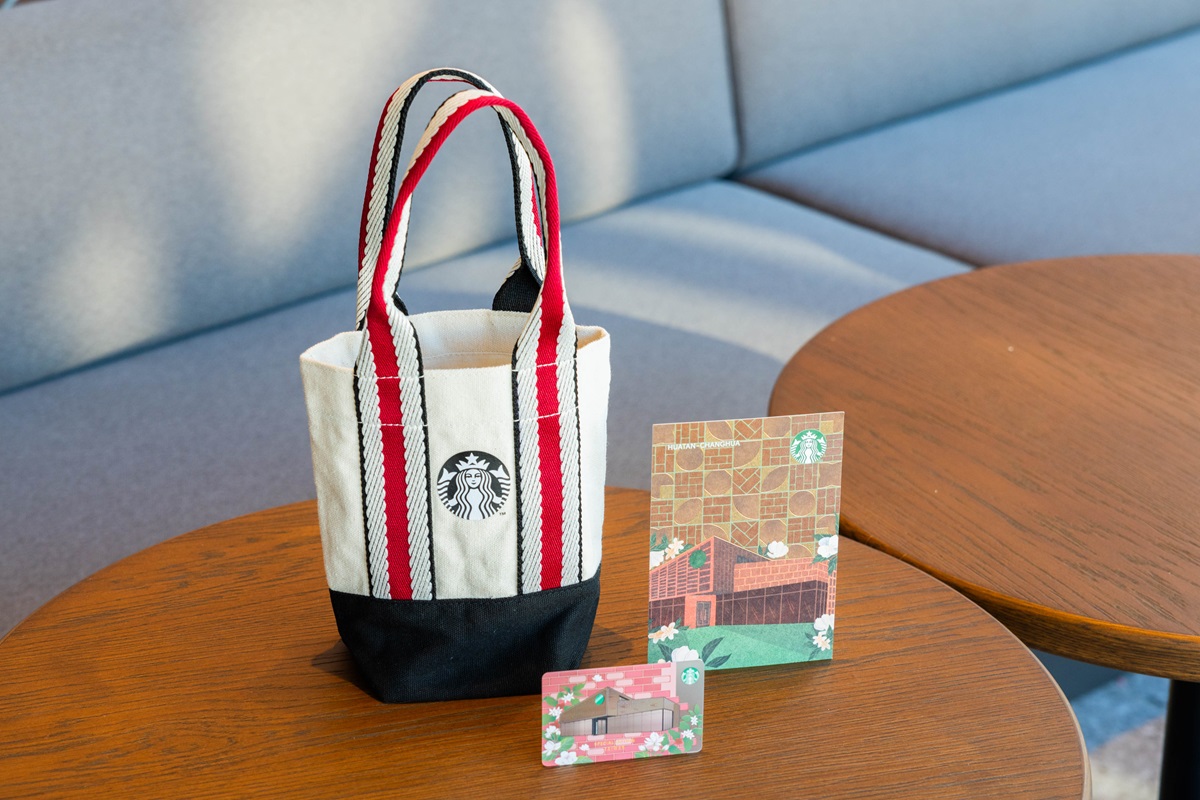 星巴克也推出「彰化花壇隨行卡」,以特殊窯磚意象的彰化花壇門市建築為圖面主體,背景則呈現交錯的磚色與鏤空堆疊的設計,周遭並點綴著品牌的咖啡花樹,象徵著當地故事與文化透過一杯咖啡的連結,再度於全新的空間中交匯與重逢。不僅如此,還有「直紋拼色隨行杯袋」,選用溫暖磚色與經典黑色搭配直紋織袋設計提把,既實用又具設計感,兩款商品皆於彰化花壇門市開幕時首賣。