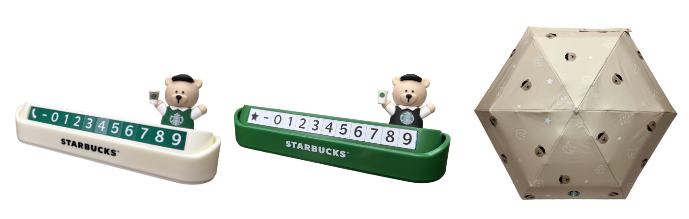 凡顧客於11月30日至12月14日原價購買特色商品直紋拚色隨行杯袋或彰化花壇隨行卡乙個,即可點購兩杯相同口味/容量/冰熱皆一致的飲料,享第二杯半價優惠;11月30日至12月31日活動期間(不含12月6日、12月20日、12月25日),憑當日單筆消費滿$1,000發票,星巴克小熊臨時停車號碼牌乙個;當日單筆消費滿$1,800元發票,還可獲得星巴克小熊輕量晴雨傘乙把。
