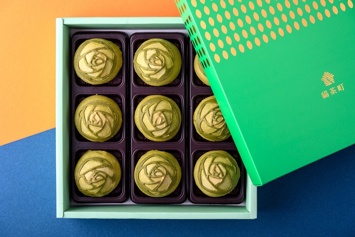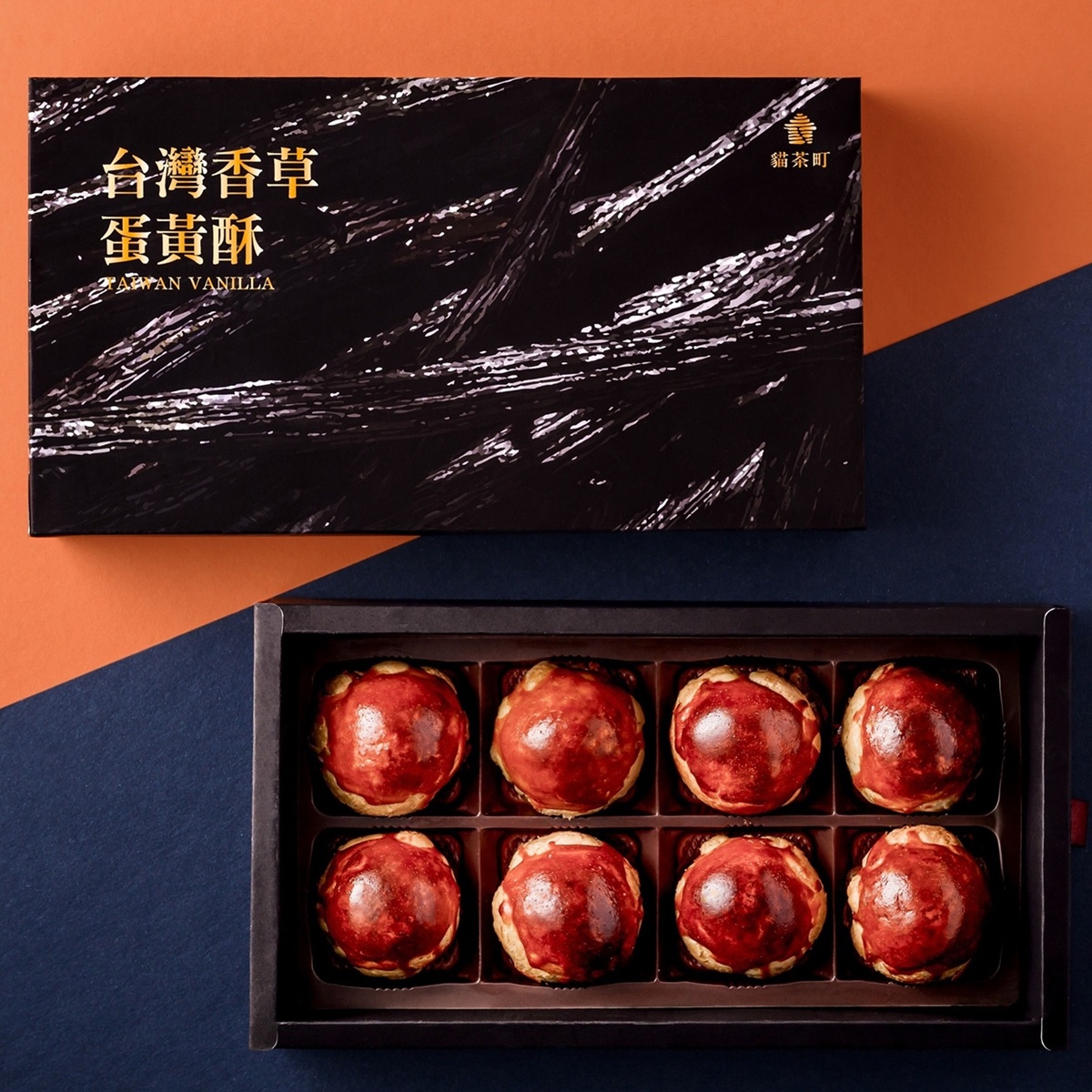 貓茶町 今年以「3 酥+1 捲」打造最具話題的中秋禮盒。其中,「鐵觀音茶金蛋黃酥」使用 2 公克鐵觀音茶粉融入酥皮與內餡,茶韻厚實,搭配醃製 23 天的紅土鴨蛋,鹹香回甘;「台灣香草蛋黃酥」則選用本地香草莢與蘭姆酒醃漬鴨蛋,釋放柔和香氣,讓傳統點心展現洋派風情。