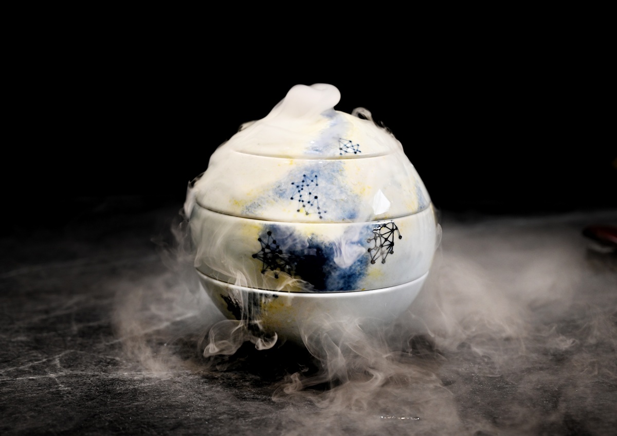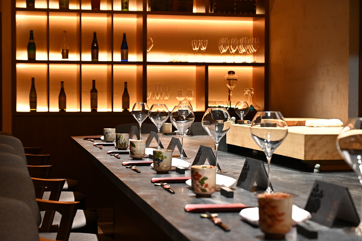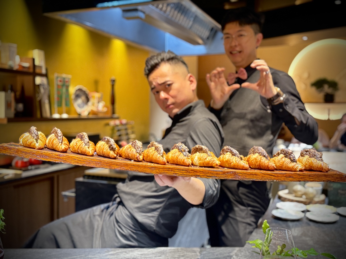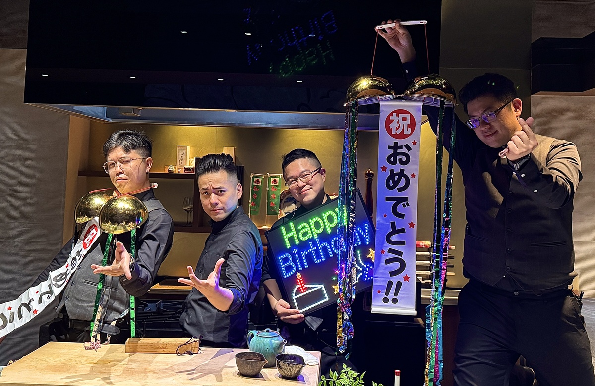 板前長蕭桔麟將嚴謹的割烹精神,轉化為一場充滿張力的表演:上菜時刻,他會搭配誇張的肢體語言,時而俯身轉腰,時而與助手即興互動,連擺盤都像是精心設計的舞台走位。