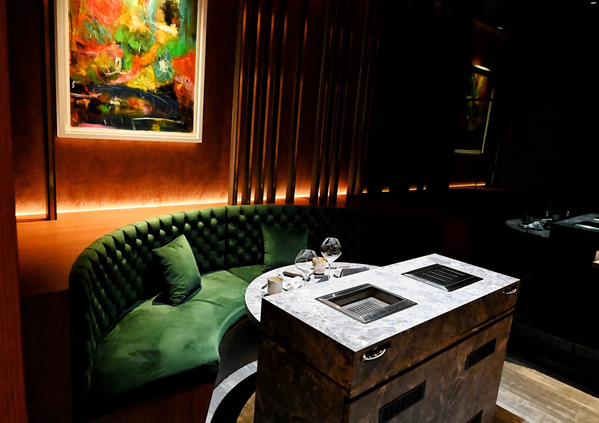 兩人包廂擁有獨立廁所,舒適沙發比照高級飯店規格,加上無煙燒肉專用的Simpo 爐台,讓賓客在私密的小空間中也能享受絕佳用餐體驗。(燒肉天皇提供)