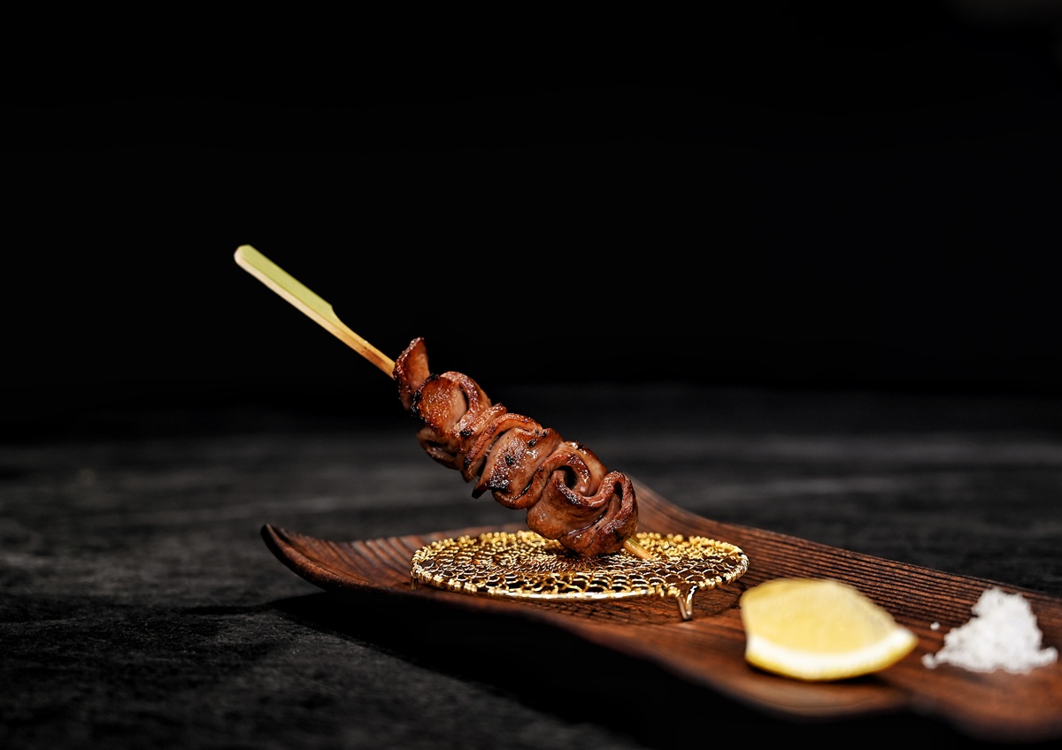 煙燻和牛牛舌 煙燻和牛牛舌串將牛舌前段薄切後以竹籤串起,炭烤後再燃燒稻草利用燻煙增添獨特香氣(燒肉天皇提供)