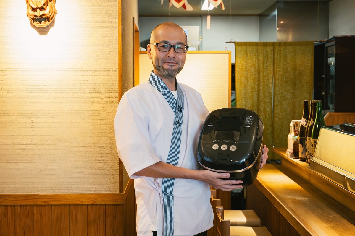好的飯糰,靈魂絕對在於米飯。這次宿六選擇與日本虎牌 TIGER 合作,正是因為 TIGER 的雙重壓力 IH 電子鍋能精準掌控火候,將新潟越光米煮到最完美的狀態。