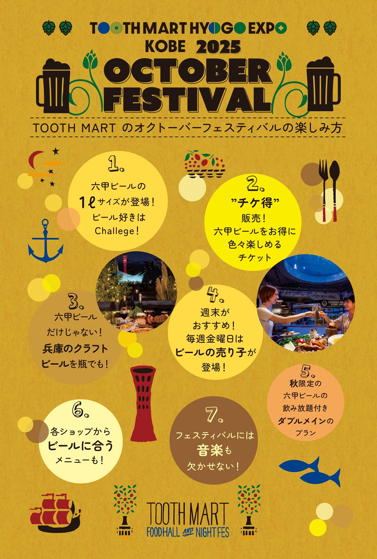 當秋風吹起,神戶港灣點亮花火,爵士樂隨夜色流淌,一場結合美景與美食的盛典即將上演!神戶最大級美食殿堂「TOOTH MART」於 9 月 17 日起舉辦 KOBE OCTOBER FESTIVAL 2025。從本地精釀六甲啤酒到兵庫在地美食,還能邊享受海港夜景邊品嚐BBQ,搭配音樂與煙火,將神戶秋夜化為最難忘的歡聚時光。