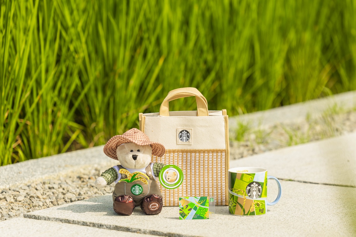 為慶祝開幕,星巴克推出「苑裡稻香馬克杯」、「稻香隨行卡」、「女神拼接仿草編織提袋」與「稻香農夫熊寶寶」等限定商品。每件設計都取材自稻穗、田埂與晨光色調,呈現自然的純粹與收穫的喜悅。