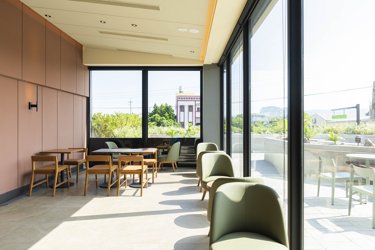 店內天花以稻海延展為靈感,藝術牆面以「曬咖啡豆」意象呼應「曬穀場」,以細節詮釋咖啡與稻米同樣需經時光淬鍊的精神。車道型服務(Drive-Thru)更為旅人帶來一份便利與從容,讓每一杯咖啡都能伴隨田野香氣,延伸成一場生活的緩行。
