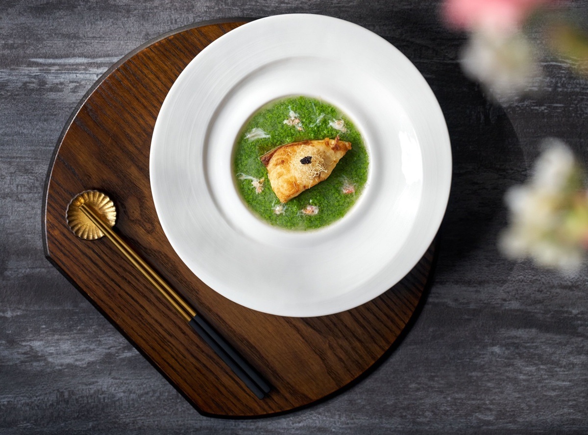 台北福華大飯店蓬萊邨重現1923年裕仁皇太子來台的皇家宴席,將百年失傳的御宴料理以台菜為骨、法魂為韻,打造一場跨越時空的美饌盛宴。主廚陳冠閔以精緻料理手法,將傳統台菜的厚實底蘊與當代餐飲的美學細節融合,讓饕客在台北就能感受猶如皇室般的尊榮味覺旅程。