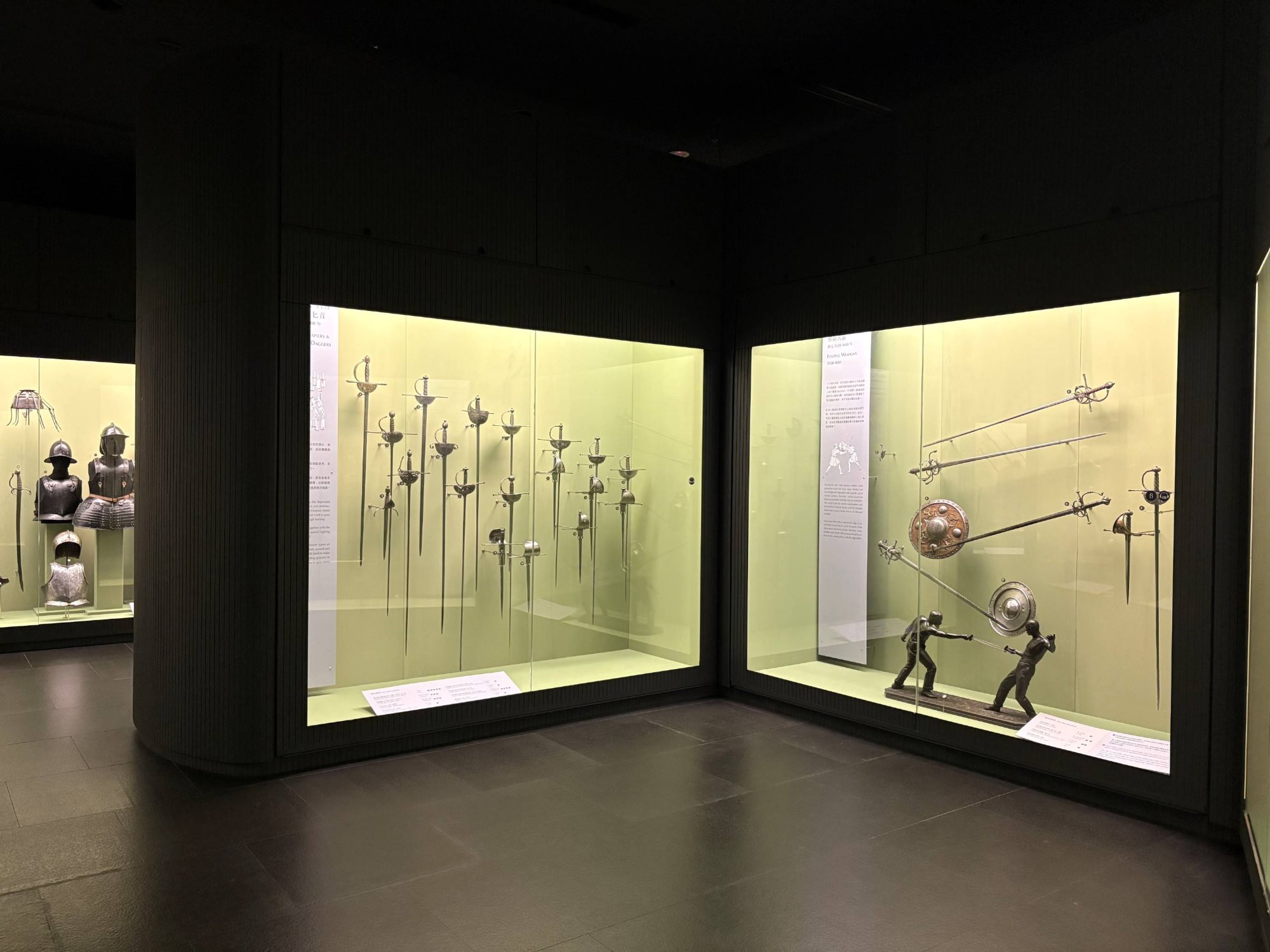 先由大師親自導覽兵器廳之競技兵器重點藏品,再回到教室以木製練習劍進行長劍、西洋劍的基礎步法、握劍與攻防練習,並比較義、法、西三大流派差異,將「看得懂」進一步變成「做得到」。