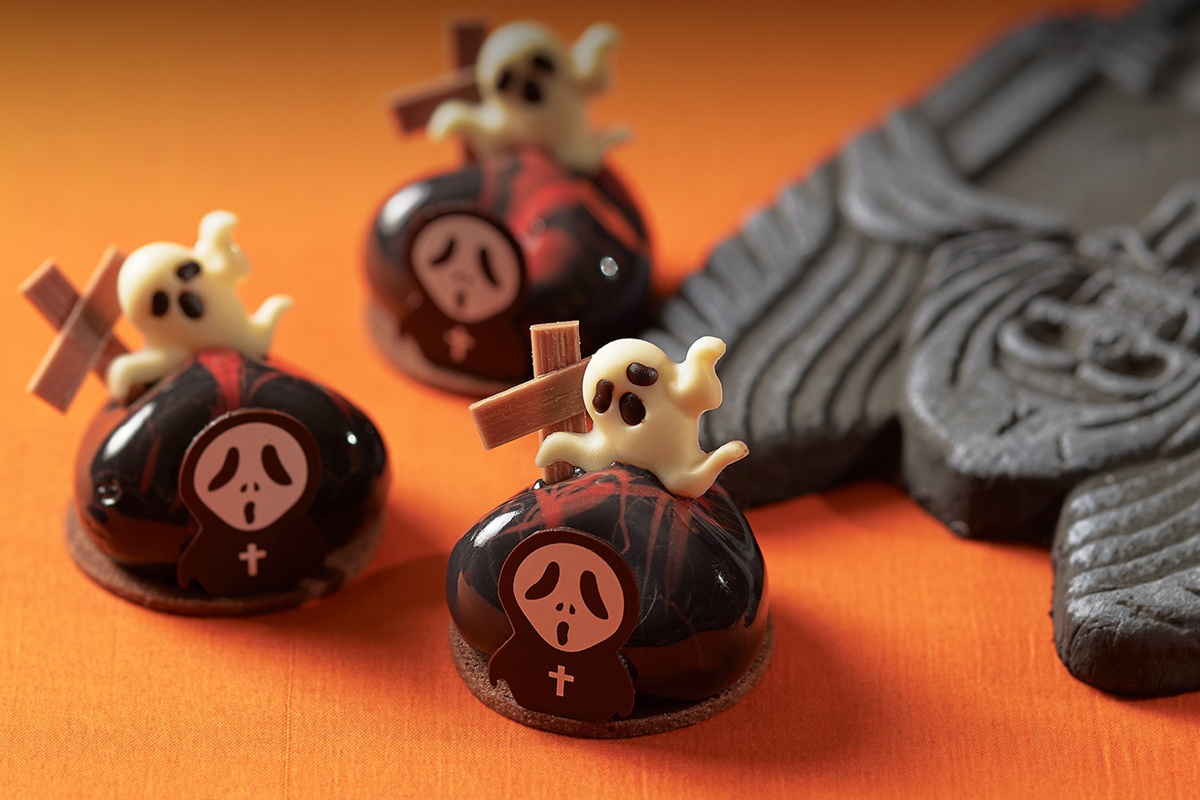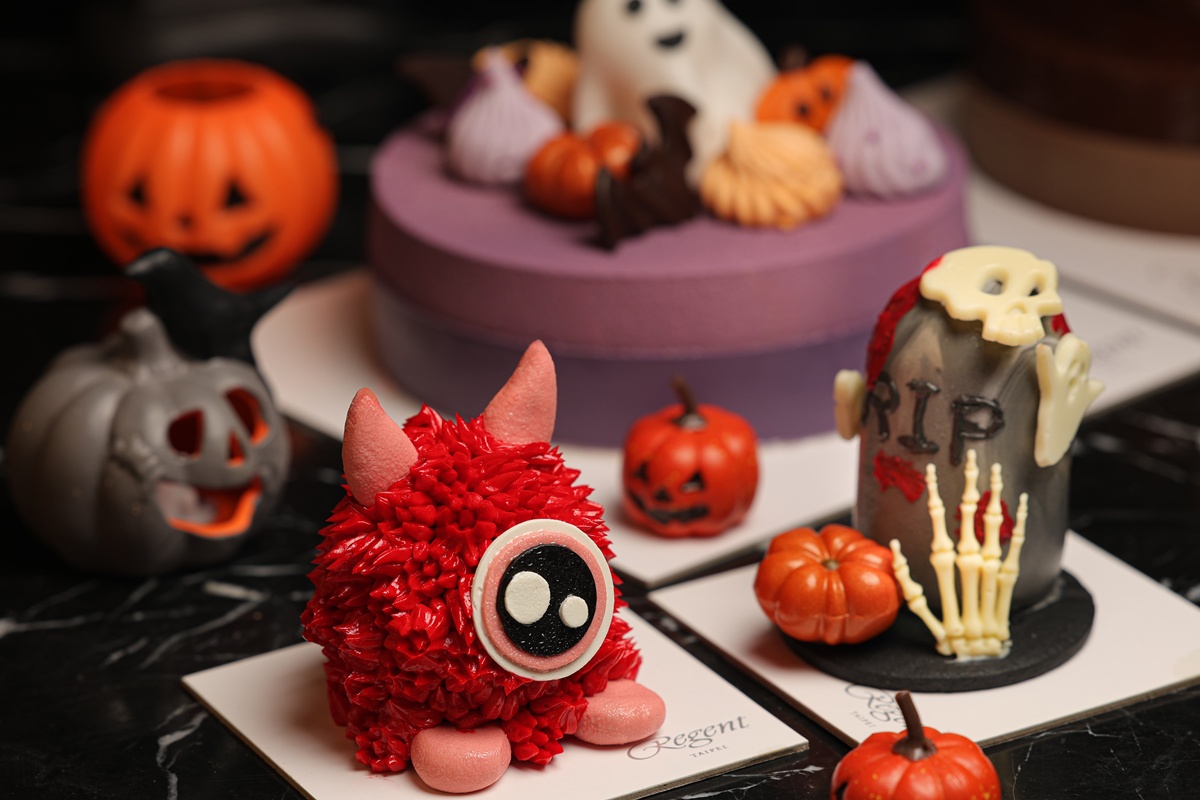 台北晶華推出的各式萬聖節甜點中,不可錯過的還有精巧奇趣的「邪惡精靈」與「幽靈之墓」造型小蛋糕,為節慶增添無限樂趣與驚喜。圖/台北晶華提供