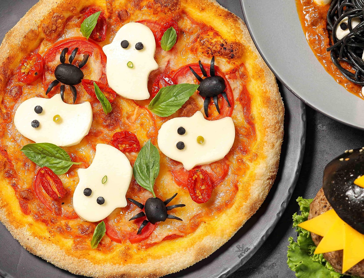 台北晶華酒店將十月化為「晶華萬聖城」,打造從味覺到視覺的沉浸體驗。一樓 azie 餐廳推出「鬼魅南瓜漢堡」、「木乃伊番茄培根義大利麵」、「萬聖幽靈披薩」等變裝料理,主廚以節慶創意改造經典菜色,令人驚艷又趣味。