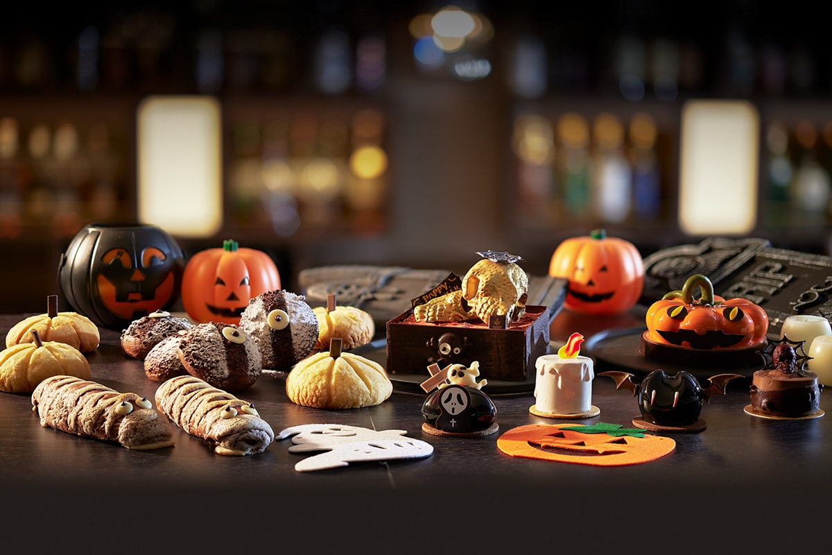 甜點主廚 Delcourt Laurent 打造「萬聖甜點屋」,內有「黯夜黑絲絨蛋糕」、「午夜南瓜榛果巧克力」、「黯黑蝙蝠抹茶慕斯」等限定甜品,每款造型宛如藝術品;還有「邪惡精靈」、「幽靈之墓」小蛋糕,以及木乃伊熱狗、鬼臉佛卡夏等造型麵包,讓節慶味更濃。