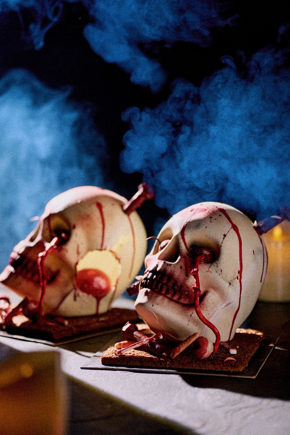 台南晶英萬聖節驚悚「骷髏詛咒」八吋海綿蛋糕,搭配酸甜草莓凍與果泥,超逼真每顆1,580元
