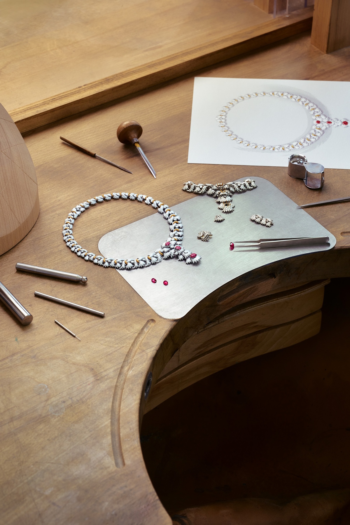 Urchin「深海星芒」透過金箔琺瑯技藝,重現海膽的虹彩質感;Mermaid「海靈仙姿」則以黑色蛋白石演繹美人魚的幻夢;Ocean Flora「碧海蔓影」推出獨一無二的鑽石珠寶腕錶。這些設計不僅是珠寶,更是流動的藝術雕塑,將 Jean Schlumberger 的傳奇語彙注入當代詩意。