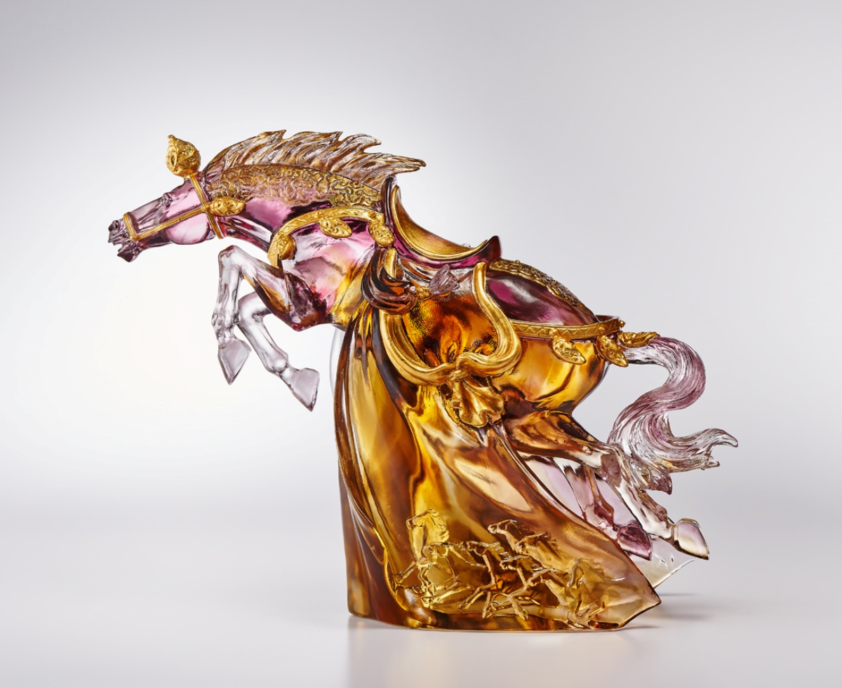馬,可說是tittot 琉園的創作DNA,回顧琉園三十多年的創作歷程,最鍾愛的主題,是馬。2026年為丙午馬年,琉園以「馭極」為題,將馬在漢文化中的君權、身分與財富三大象徵,延伸出五大品格與對應之作品,均為對典藏者品格之頌讚。「馭極」系列整體所闡述的意境為「大捷而歸.馭極而治」,作品充分利用琉璃穿透的材質特性,大玩陰雕與浮雕技法,透過光線若隱若現,彷彿每件作品都是一個舞台,上演著恢宏的劇碼。