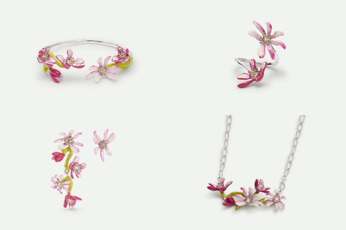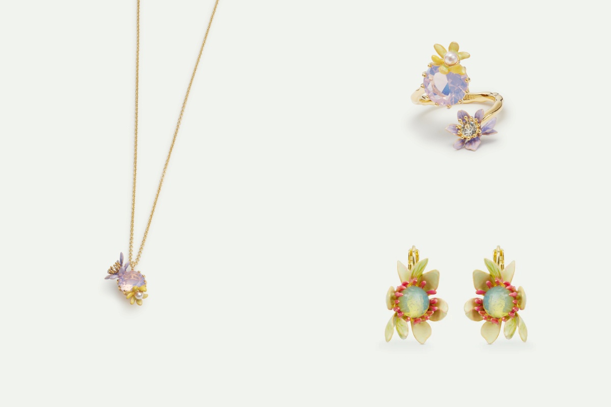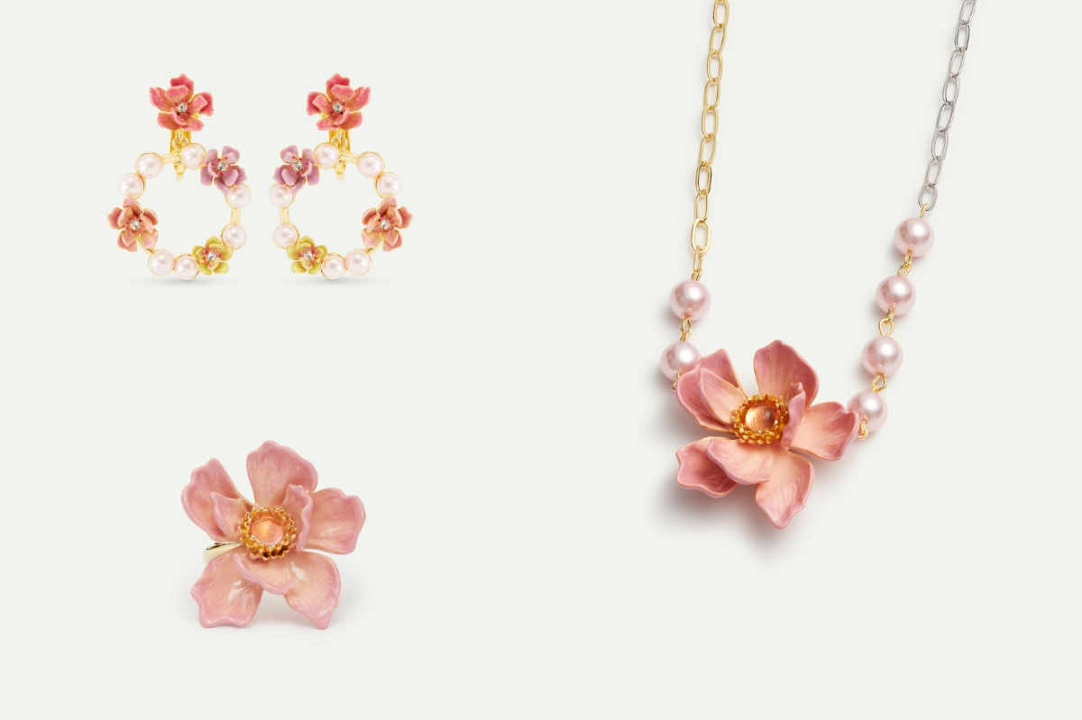Les Néréides以精湛工藝重新詮釋木蘭花,透過銅鍍18K金、鍍銠、珠飾、切割水晶與手繪琺瑯等細節,呈現花朵的立體層次與奇幻色彩。
