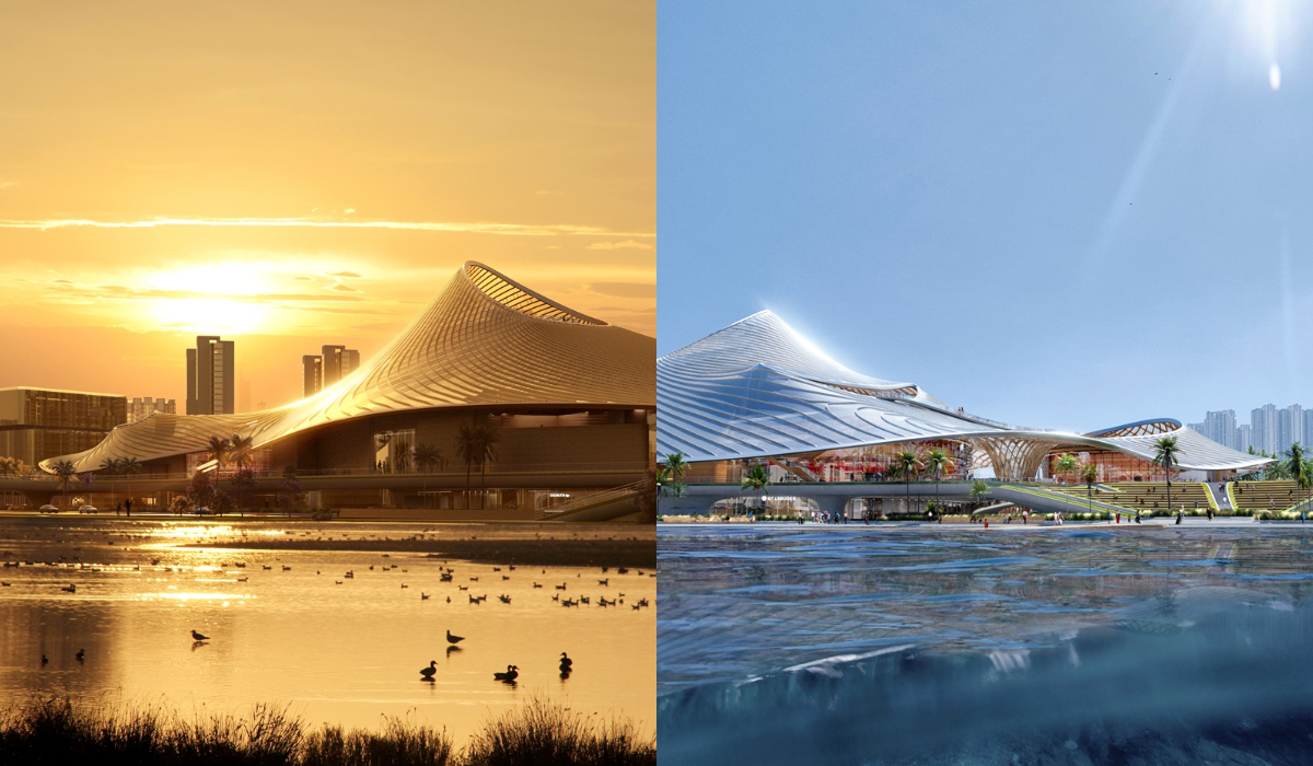 建築作品散發強大戲劇張力的中國建築師馬岩松,率領MAD建築事務所規劃了南海藝術中心,綿延起伏的設計造型,宛如湖面波光漣漪的擴散,也讓人想起事務所先前的哈爾濱歌劇院,再次勾勒地表壯麗的建築新地貌。