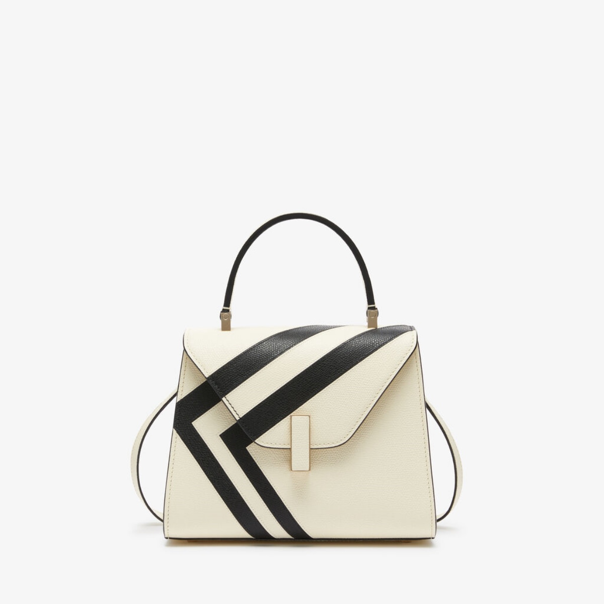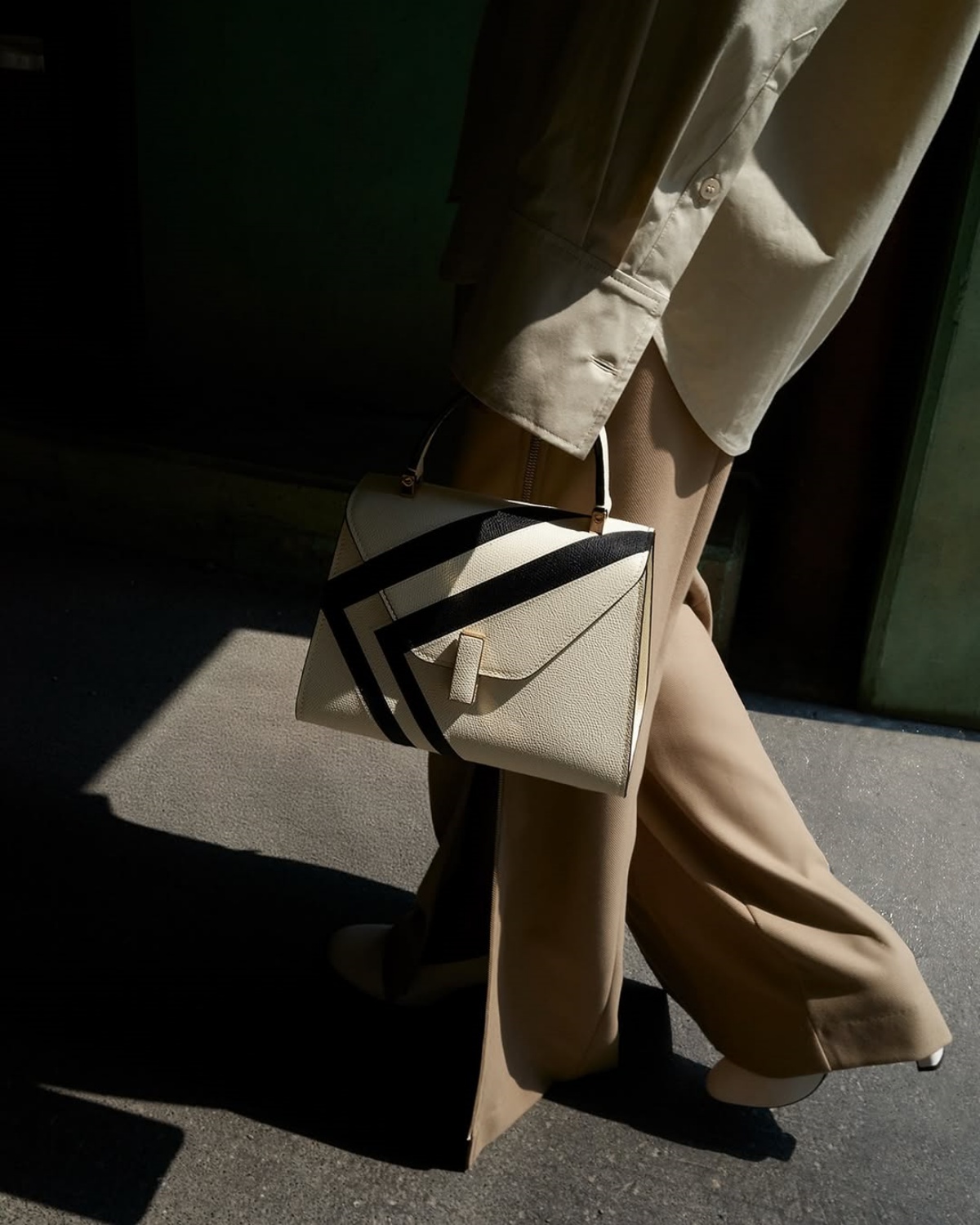 Valextra Intarsia 系列以黑白拼色的幾何語彙,映照米蘭建築中光影交錯的層次感。無論是線條俐落的結構,還是弧面柔和的曲線,都透過精湛的皮革拼接工藝被凝鍊於包款之上。這些作品不僅是對米蘭建築美學的當代詮釋,更是 Valextra 一以貫之的工藝信念——將生活轉化為藝術,將藝術融入日常。