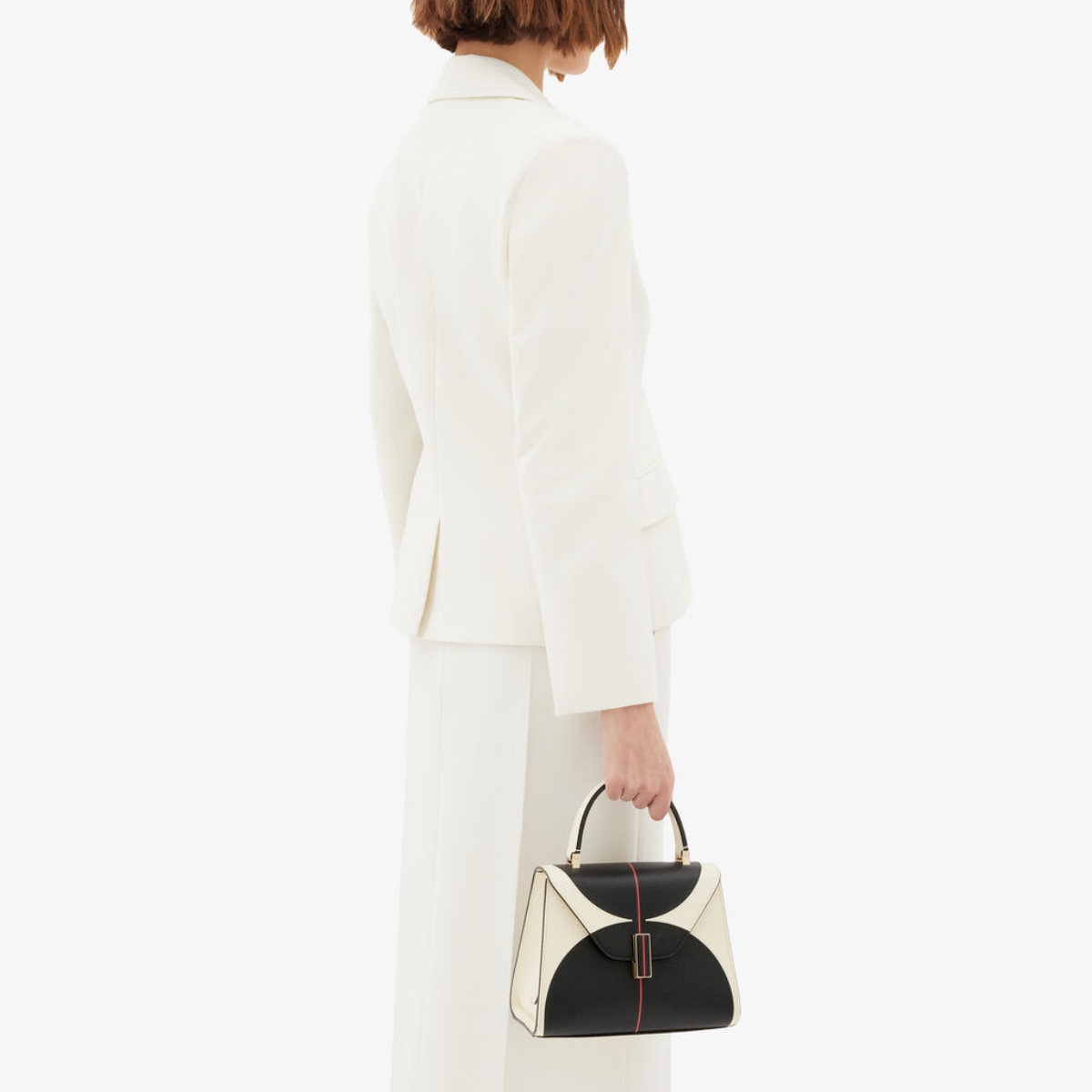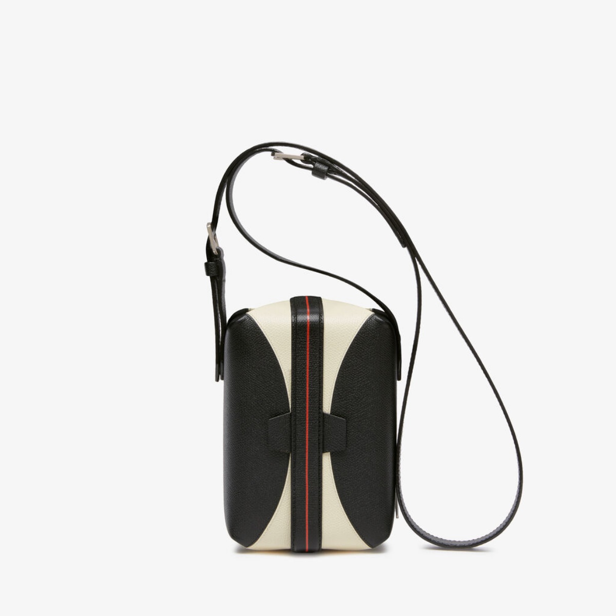 其中,Iside Intarsia Balance 以及Tric Trac Intarsia Balance包款更將黑、白與紅三色巧妙結合。工匠以精湛技藝將對比色皮革精確裁切後,細緻縫合於一體,成就完全平滑的表面質感。內部空間可容納日常必需品,搭配可調整且可拆卸的肩帶,能以肩背或斜跨方式輕鬆切換。最後以 Valextra 代表性的黑色 Costa 漆邊收邊,既是個人化的工藝印記,更是功能與藝術的完美結合。