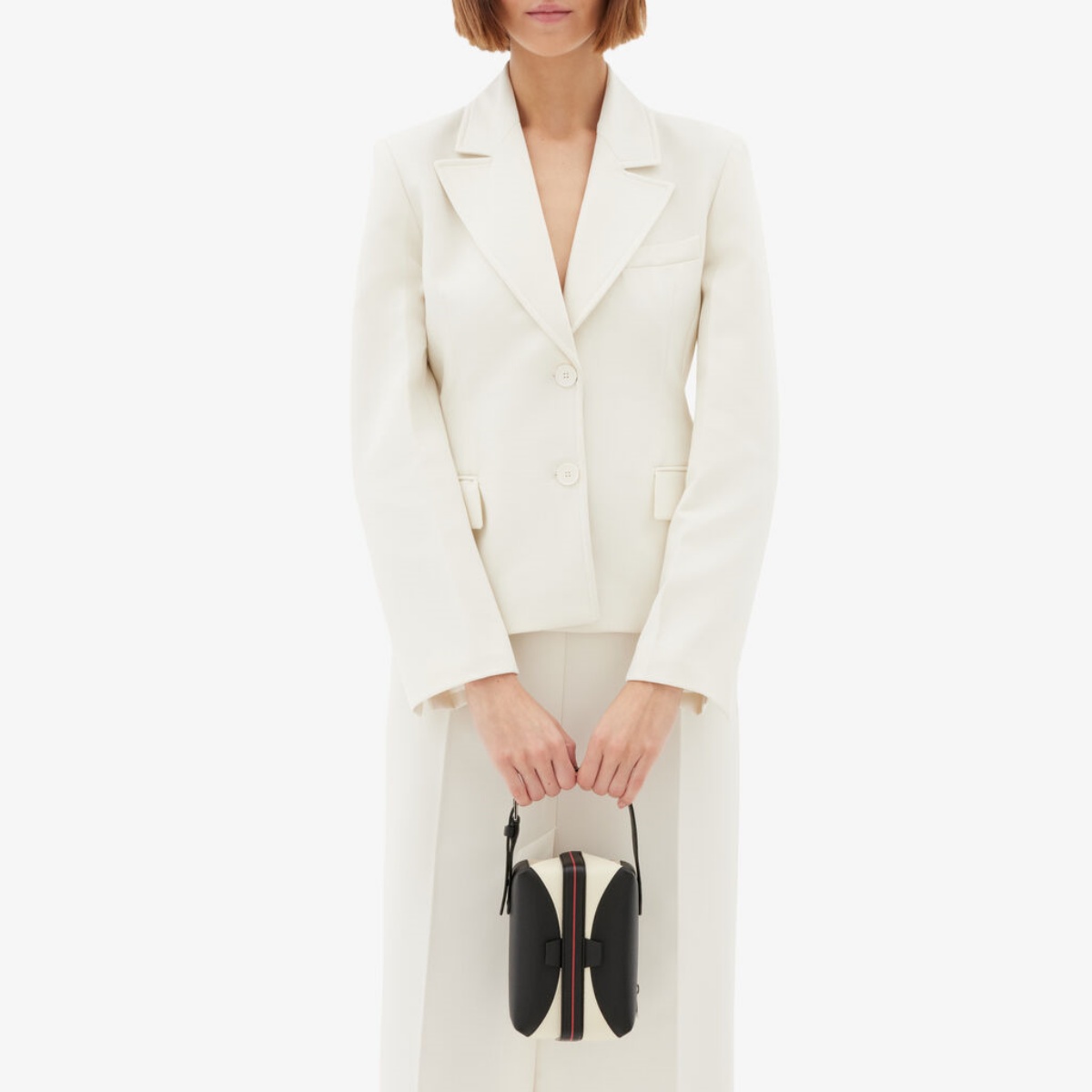 Intarsia 系列從米蘭城市建築中汲取靈感,將現代主義的簡潔線條與自由主義時期的曲線語彙和諧交織。黑白拼色的幾何對比,呼應建築立面光影的交錯,亦成就包款獨有的藝術存在感。
