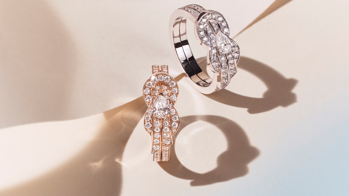 全新Chance Infinie系列巧妙融合「8」字圖案和末端解開的絲帶,將這個幸運數字化作飄逸柔美的蝴蝶結。仔細重塑的蝴蝶結展現更柔和的曲線和圓渾美感,靈動精緻,脫俗唯美,使珠寶份外迷人。這兩個緊密交織的元素形成一條優美靈巧的生命絲帶,代表幸運和命運皆為永恆流淌和相輔相成的能量。