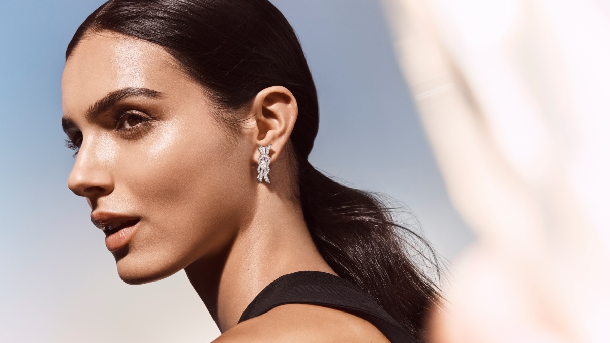 以白金雕琢而成的高級珠寶套裝包括一條項鍊、一枚戒指和一對耳環,並以密鑲鑽石點綴,閃爍生輝。項鍊和耳環均以一顆0.7克拉的梨形鑽石為主石,而耳環則採用精緻靈動的絲帶流蘇設計,隨著舉手投足搖曳生姿。三款高級珠寶皆推出玫瑰金和白金款式,並體現Chance Infinie系列的創意魅力:戒指、項鍊和耳環的圖案既可以呈現為「8」字,也可以旋轉變成無限符號。流麗優雅的線條映襯中央的梨形主石和密鑲鑽石,鑽光耀目,完美配襯日常造型,為肌膚添上細膩動人的光芒。