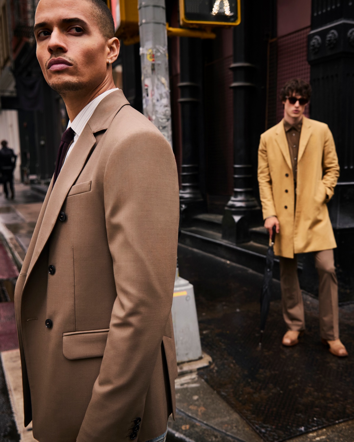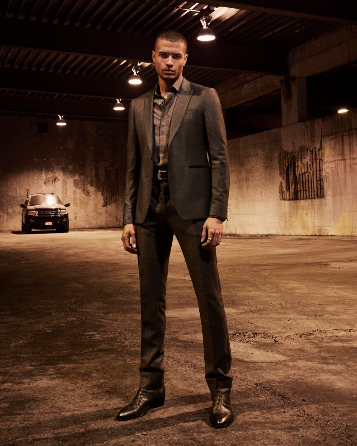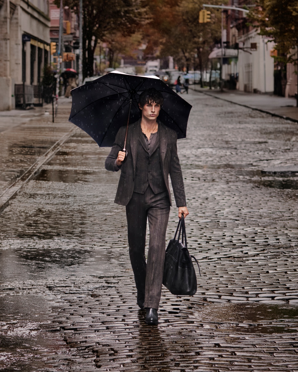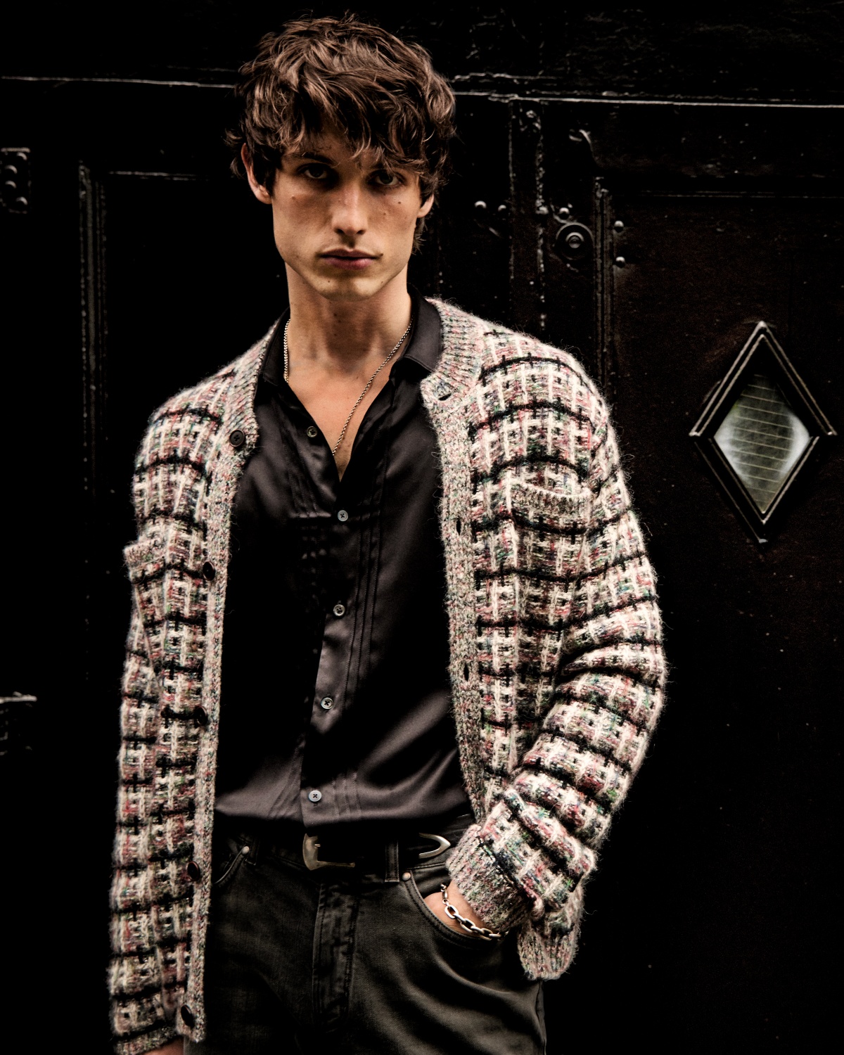 形象企劃取材自都會街道與時光沉澱,描繪個體與群體間的張力,以優雅與顛覆並置的手法,勾勒當代紳士的多重面貌。剪裁俐落的西裝外套以鮮明色調映現都會男性的果敢自信;仿舊羊皮飛行員夾克注入叛逆與搖滾靈魂,在光影交錯間彰顯自我。提花針織衫搭配輕盈絲質襯衫,詮釋街頭隨性與奢華典雅格調交織魅力。