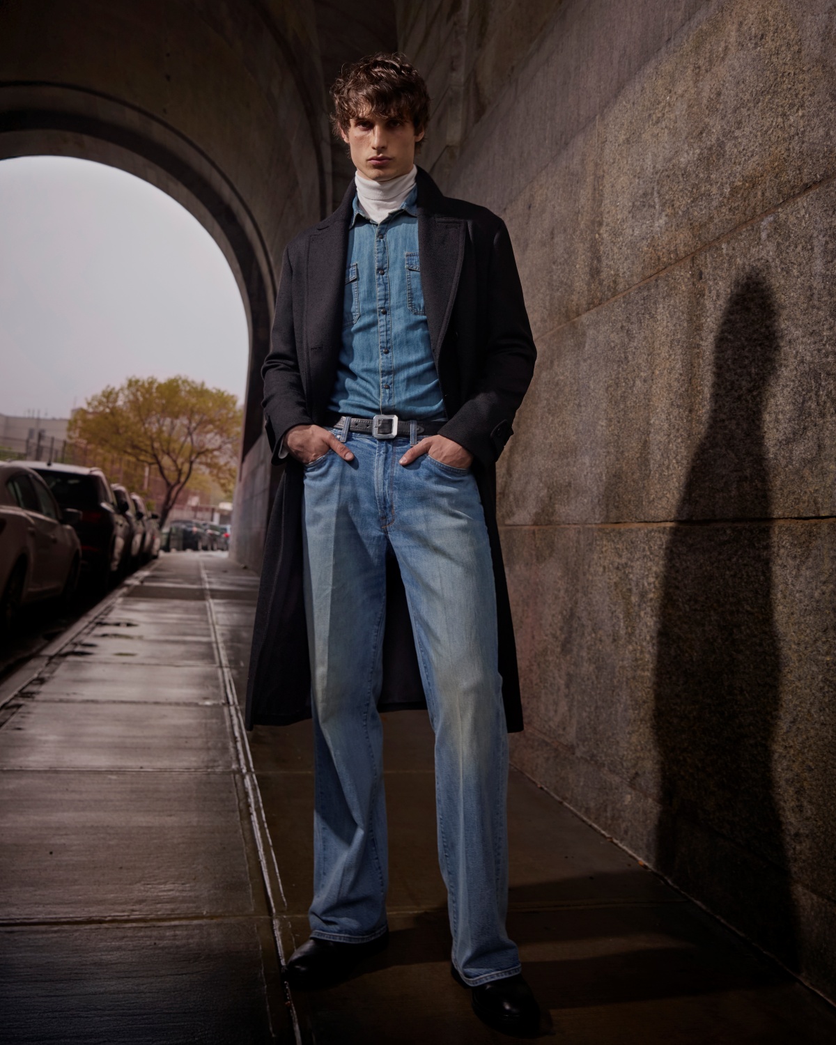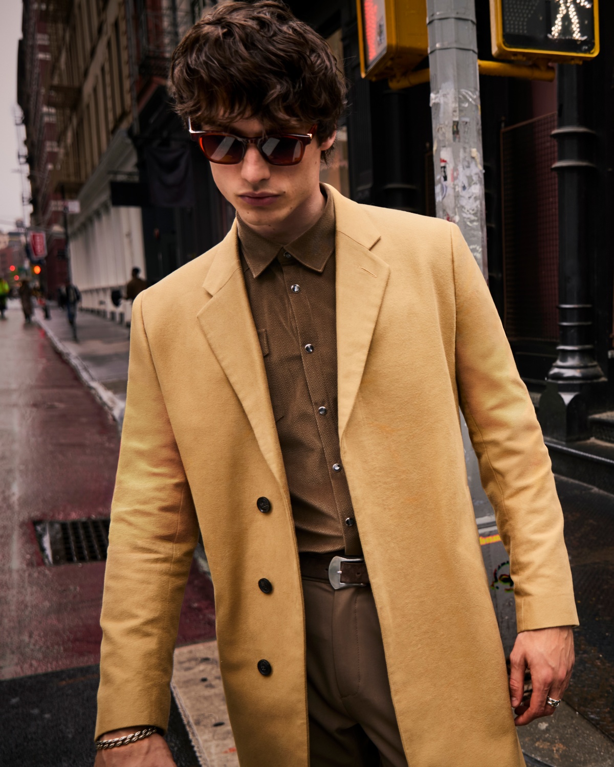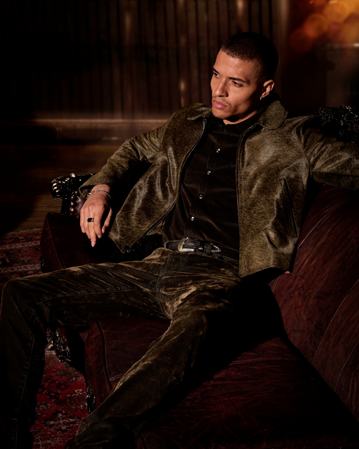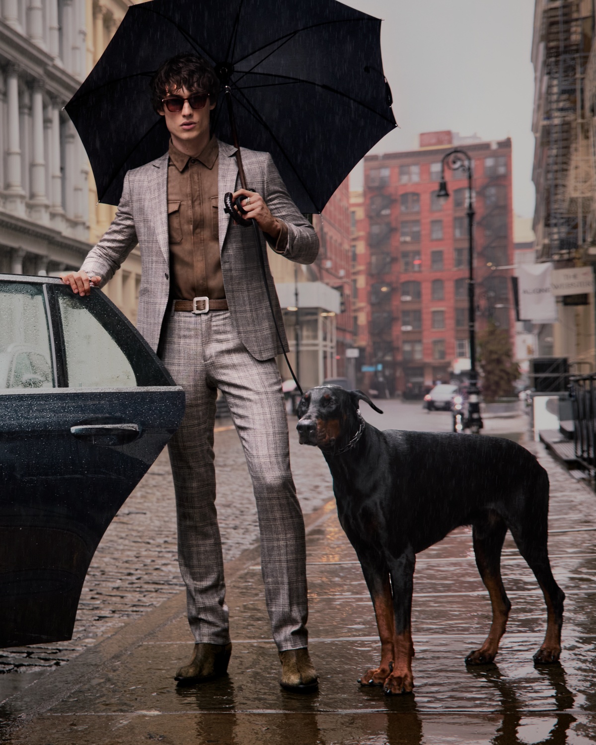 形象企劃取材自都會街道與時光沉澱,描繪個體與群體間的張力,以優雅與顛覆並置的手法,勾勒當代紳士的多重面貌。剪裁俐落的西裝外套以鮮明色調映現都會男性的果敢自信;仿舊羊皮飛行員夾克注入叛逆與搖滾靈魂,在光影交錯間彰顯自我。提花針織衫搭配輕盈絲質襯衫,詮釋街頭隨性與奢華典雅格調交織魅力。