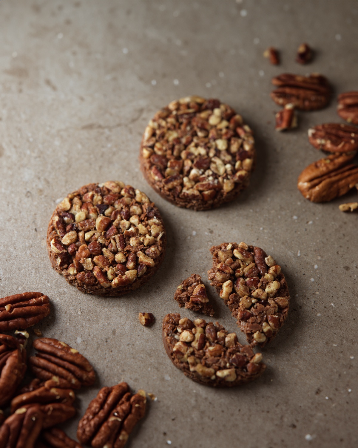 鋪滿碧根果(又稱「奶油之木」)的奢華脆口巧克力。經糖衣處理後,香氣濃郁、甜度恰好,搭配絲滑牛奶巧克力,交織出馥郁香氣與深邃風味,只有在快閃店才能嚐。