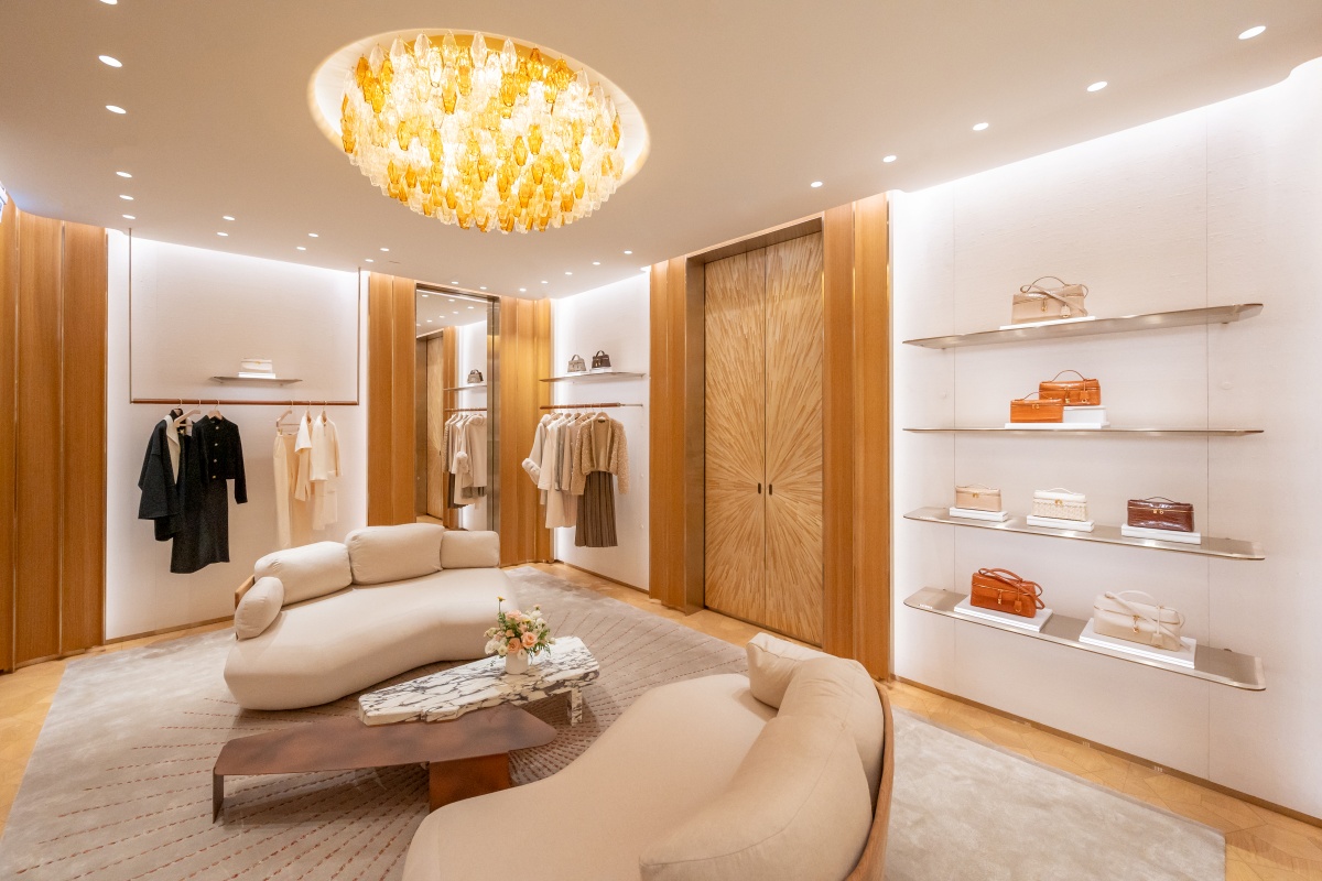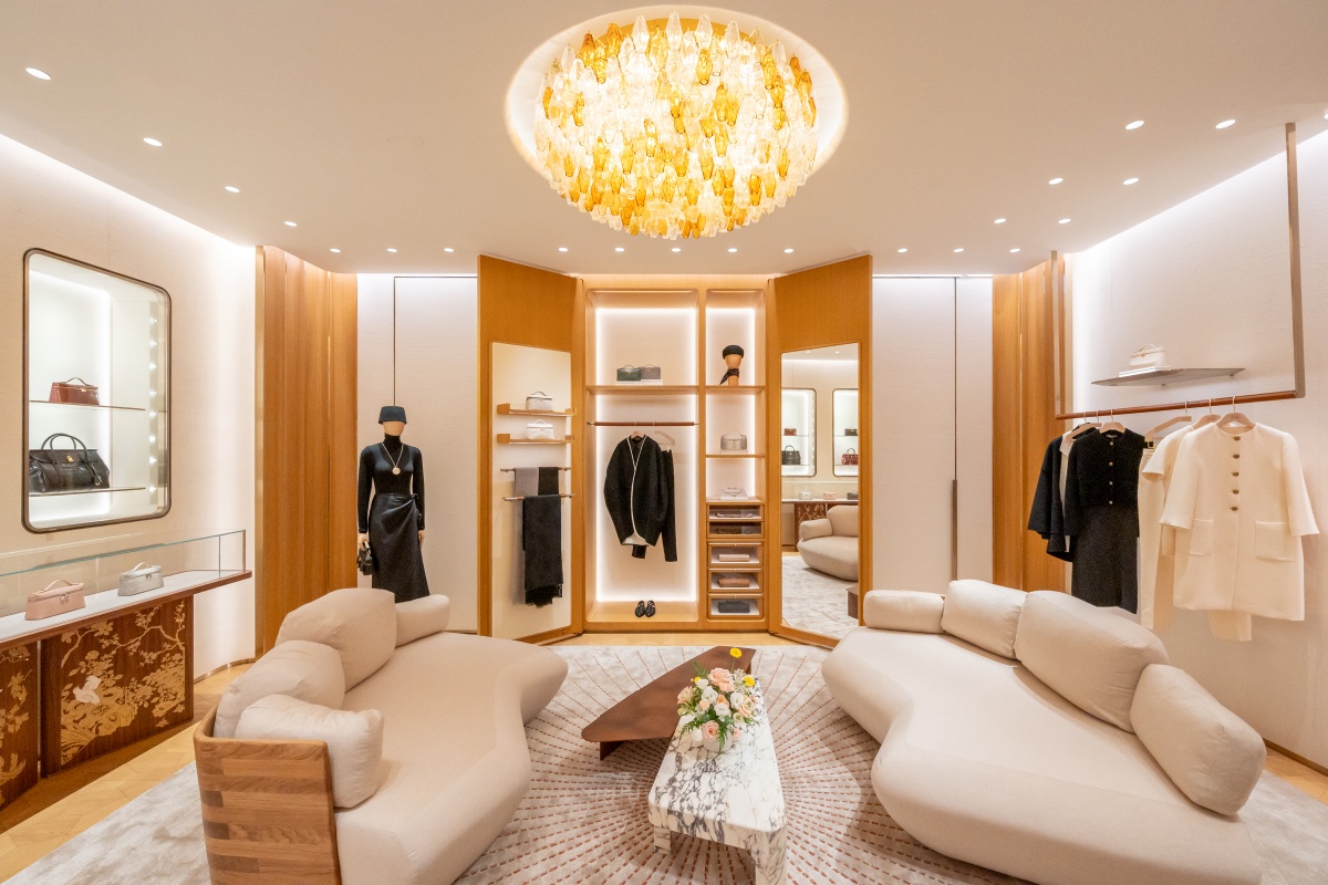 精品店以寬敞的單層空間呈現,為顧客帶來順暢的購物體驗。入口區域展示琳琅滿目的配飾,其中,中間的牆壁更展示以手袋為主的各類皮具,並延伸至男女鞋履及成衣區。店內透過別出心裁的佈局,引領顧客從入口沿途探索至最深入的位置,設有私人空間以供預約專屬體驗。
