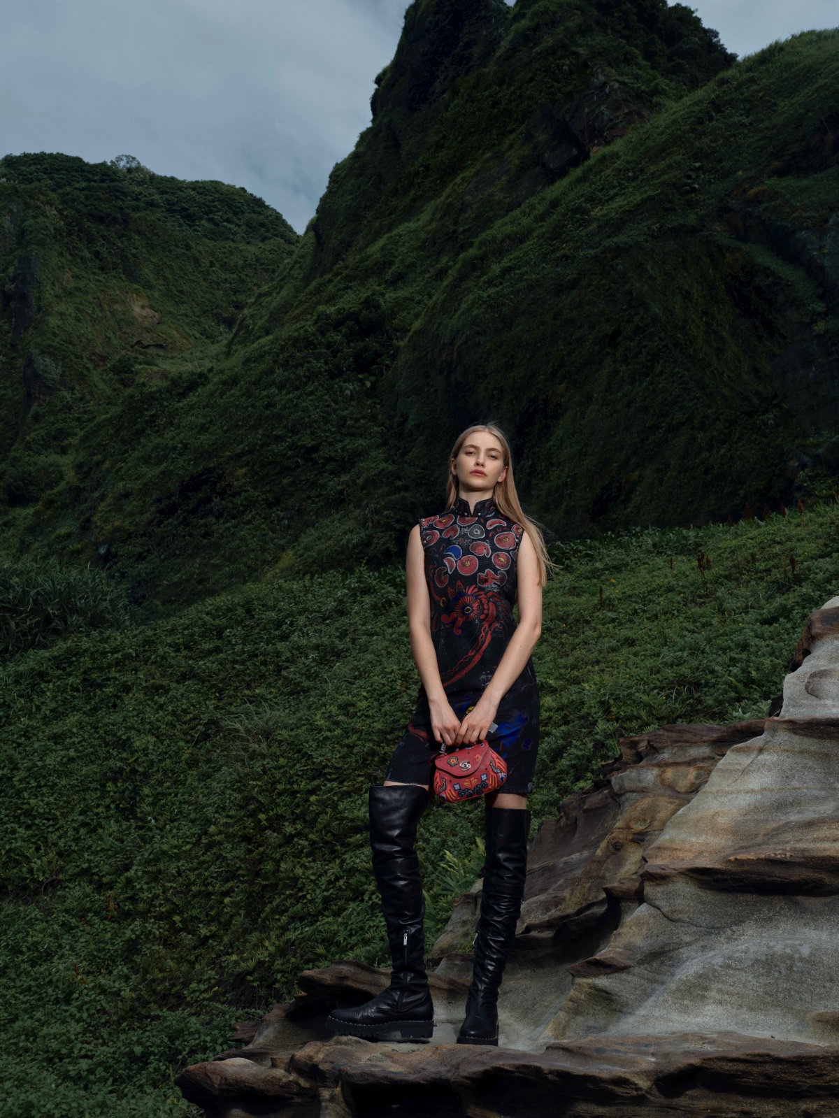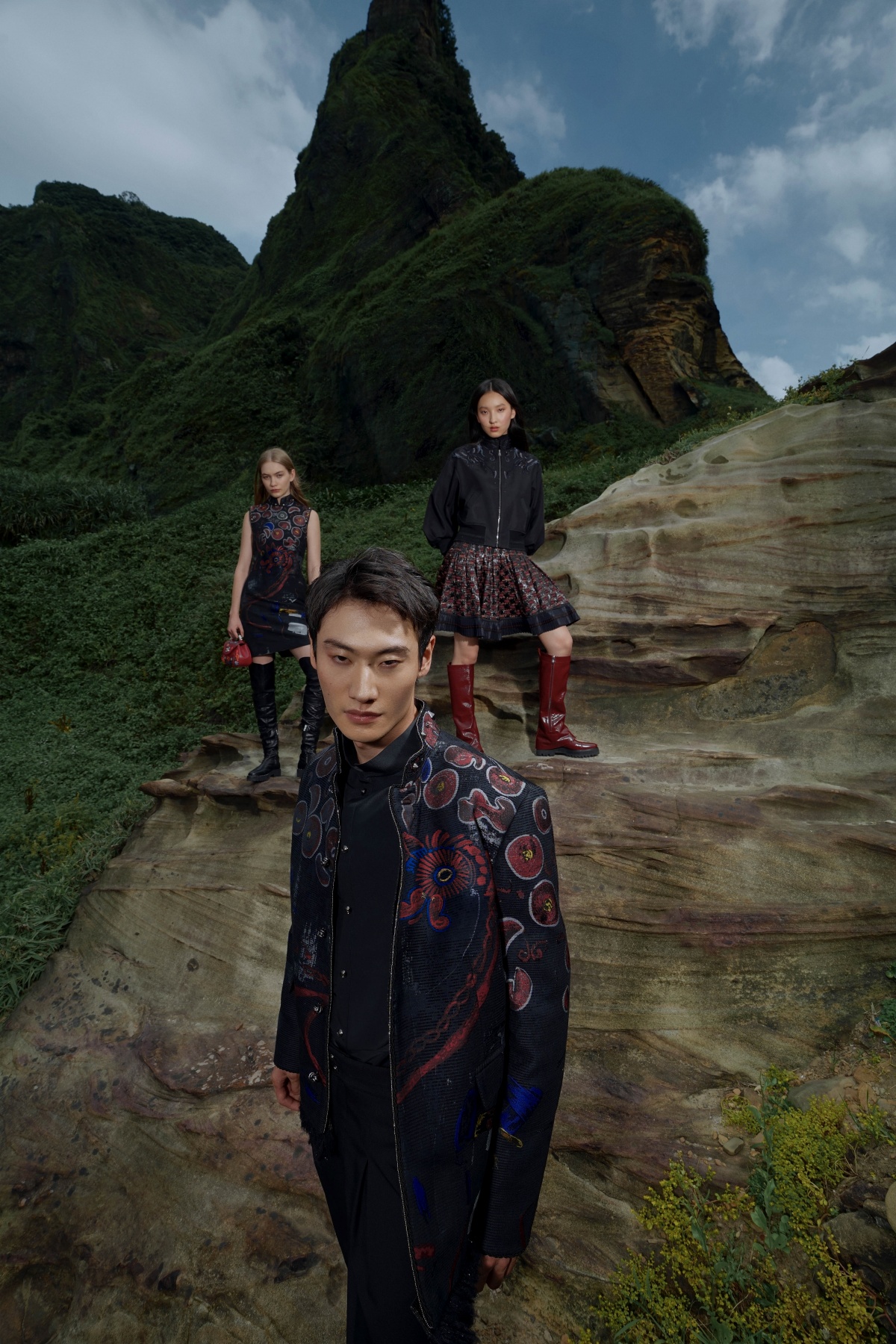 延續對「未曾停下腳步的旅人,未曾停止書寫的文化」的探索,本季以苗族遷徙故事為靈感軸線,將大山、河谷作為無邊的舞台,呼應苗族對山川萬物的敬畏—巍峨的群山如守護者,奔流的河水如記憶的長詩。這是一場屬於當代女性的文化獨白,亦是一段披天載地的優雅行旅。