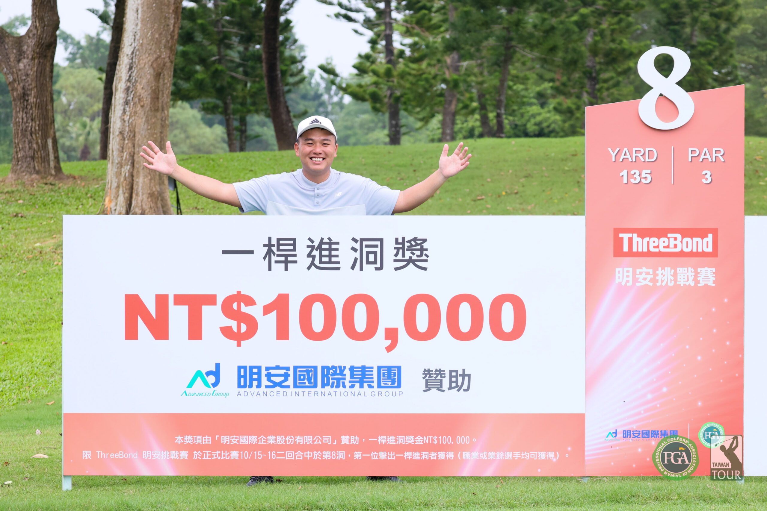 第一回合林晟毓在第八洞一桿進洞,獲得明安國際集團贊助獎金10萬元及南一球場獎金3萬元(TPGA_林聖凱攝影)